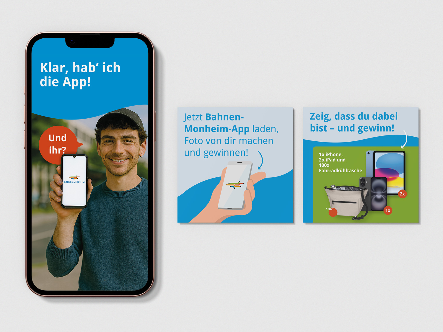 Für die Bahnen der Stadt Monheim entwickelte DID ein mehrstufiges Kommunikationskonzept zur Steigerung der Nutzerzahlen der Mobilitäts-App. Auf Basis einer eingehenden Zielgruppenanalyse entstand eine multimediale Kampagne über alle relevanten Kommunikationskanäle, die durch ein Gewinnspiel zusätzlich verstärkt wurde.